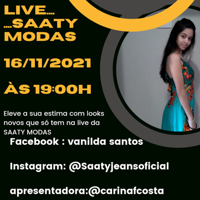 Nossa LIVE SAATY MODAS Saaty Saaty , está cheia de novidades em roupas femininas, masculinas e infantis