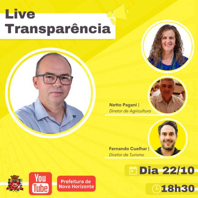 A transparência sempre será prioridade na Gestão 2021/2024.Acompanhe hoje, às 18h30 tudo que está sendo feito para o crescimento e desenvolvimento do município.