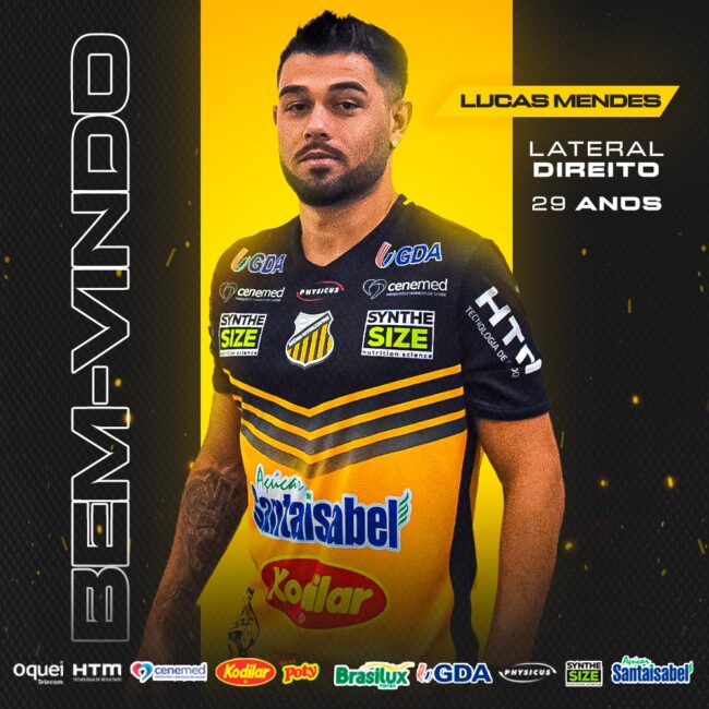 Depois da contratação do zagueiro Pedro Carrerete e do meia Anderson Rosa,esta semana a diretoria do Grêmio Novorizontino anunciou a sua terceira contratação para as disputas do Campeonato Brasileiro da Serie C.Trata-se do lateral direito Lucas Mendes. O jogador de 29 anos disputou o último Paulistão pelo Santo André.