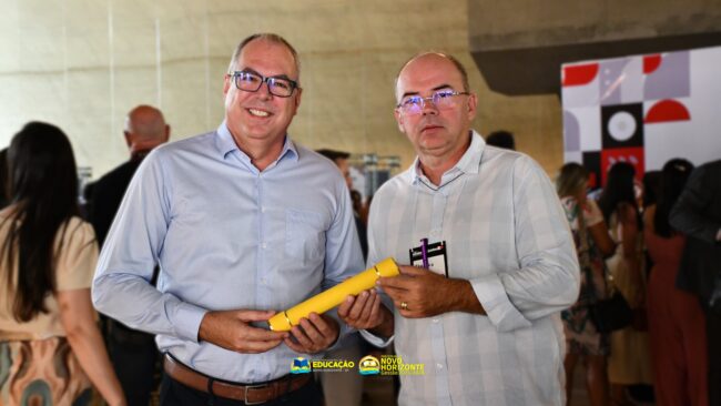 Receberam a premiação o prefeito Fabiano Belentani e o secretario municipal de educação Ademir Almagro. Foto: D. Comunicação/PMNH (Alvani)