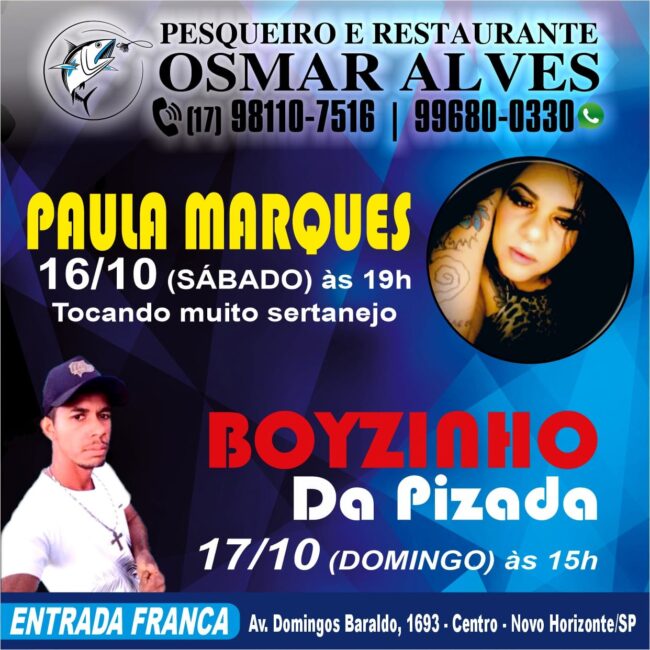 hoje tem aquele show boyzinho da pisadinha no pesqueiro e restaurante do Osmar Alves