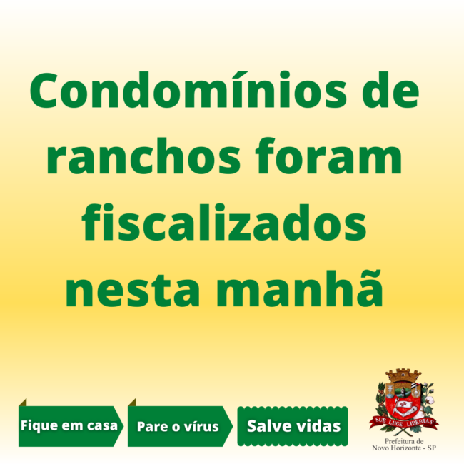 A Prefeitura de Novo Horizonte, através da Vigilância Sanitária realizou na manhã desta sexta-feira (2), fiscalização nos condomínios de ranchos. Os fiscais estiveram no Recanto dos Pescadores, Praia Novo Horizonte, Águas Claras, Praias da Mata, Recanto Taquaral, Associação dos Pescadores e Condomínio Plataforma. Estamos no pior momento da pandemia, é preciso que façamos nossa parte permanecendo em casa. Se importe com sua família e amigos. Fique em casa, pare o vírus, salve a vida de quem você ama.Larissa Corrêa Diretoria de ComunicaçãoPMNH #fiqueemcasasepuder#protejaquemvocêama#ProtejaSuaFamília