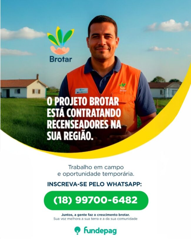 Ele estará devidamente identificado com um colete, boné e crachá do Programa Brotar.
