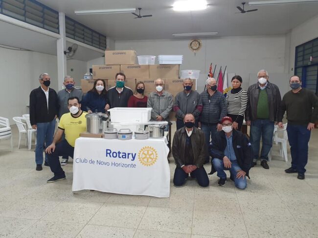 O Rotary de Novo Horizonte conseguiu finalizar com total êxito e sucesso mais um grande projeto social em prol de nossa comunidade, entregando 110 marmitas térmicas , 2 caixas para Pescado de 45 litros , 1 panela de pressão profissional Nigro Eterna , 3 bandejas Topa Tudo de 11,5 litros , 3 bacias de polietileno de 75 cm , 2 bacias Jaguar de 15 litros e 1 panela de pressão Nigro Eterna de 6 litros .