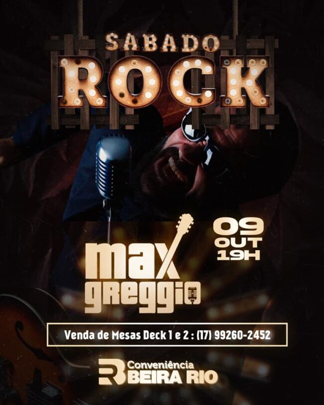 Sábado, quem disse que não teremos show? Esse show é top, e você não pode ficar de fora dessa. Estamos com vendas de mesas no DECK do PALCO.Para comprar a sua mesa ligue ou envie uma mensagem no celular 17 99260 2452 e venha curtir uma boa música com a gente.