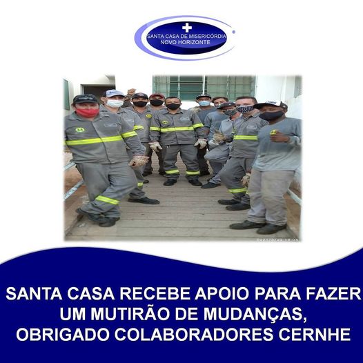 A Santa Casa busca sempre acertar em nossas ações, e para isso os desafios de mudanças são sempre necessários para dar sempre uma melhor experiência em nossos atendimentos, hoje contamos com a ajuda dos colaboradores da Cernhe Energia Rural para fazer um mutirão. Agradecemos muito pelo apoio que prontamente se colocarão a disposição, que Deus abençoe a todos!#rededobem#empresaparceira#santacasanh#novohorizonte