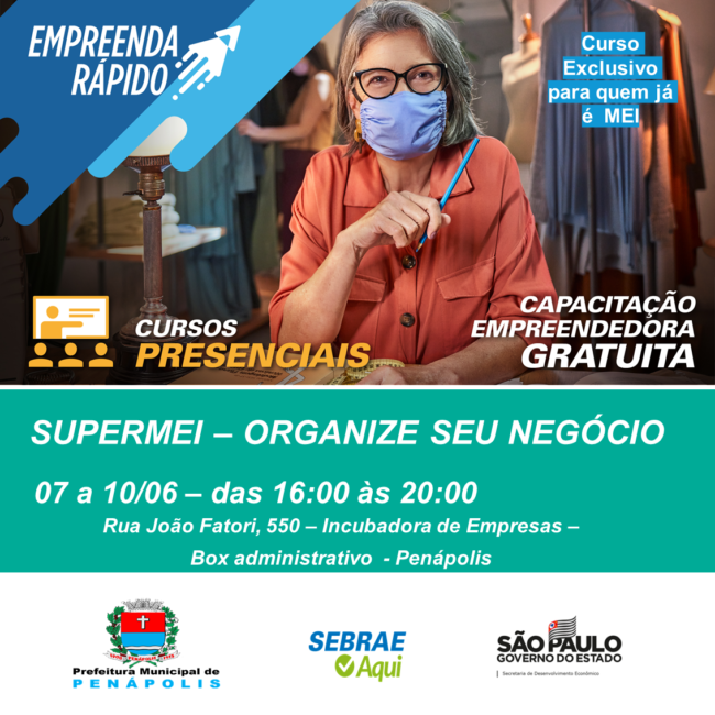 A iniciativa é exclusiva para quem já é MEI (microempreendedor individual). Trata-se de uma parceria entre Sebrae-SP, Governo de São Paulo e Prefeitura de Penápolis. As capacitações são gratuitas.
