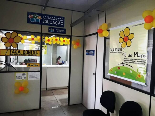 Em alusão ao Dia Nacional de Combate ao Abuso e Exploração Sexual de Crianças e Adolescentes, comemorado hoje, dia 18 de maio, a Secretaria Municipal de Educação também aderiu ao evento e promoveu uma decoração especial para recepcionar os munícipes que procuraram os serviços no Paço Municipal nos últimos dias.