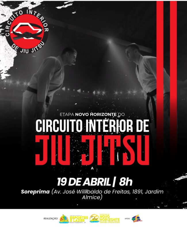 Por um dia, Novo Horizonte, se tornará a capital paulista do jiu jitsu, isto porque o nosso município sediará uma das etapas do maior circuito da modalidade de nosso pais, o Circuito Interior de Jiu-Jitsu, que acontecerá domingo, no Ginásio de Esportes do Clube Sorprima, num apoio total do presidente Luciano Correa e diretoria.