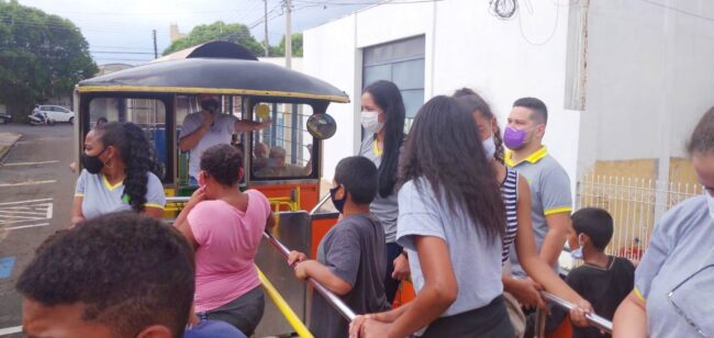 Ainda como parte da programação de aniversário da cidade, organizada pela Sasc, desde ontem estão ocorrendo passeios de trenzinho pela cidade. Os passeios, denominados como “city tour”, são destinados à participação das famílias atendidas pelos equipamentos sociais do município. O objetivo é proporcionar um passeio turístico às famílias do Cras Eldorado, Cras Planalto e Creas. A iniciativa tem a parceria da secretaria Municipal de Cultura e Turismo, que realiza a monitoria do passeio, explicando aos participantes sobre os principais pontos turísticos de Penápolis. Ontem (18) foi a vez dos usuários do Cras Eldorado. Já na programação de hoje, terça-feira (19) é a vez das famílias que freqüentam o Creas, e na quarta-feira (20), o passeio será para as famílias do Cras Planalto. O itinerário contempla a Primeira Casa de Penápolis/Museu de São Francisco, o santuário São Francisco de Assis, a Prefeitura, a Câmara de Vereadores, o Museu do Sol, o Museu Histórico e o Museu de Folclore. No caso do Museu de Folclore, os participantes realizam também uma visita in loco, com a monitoria da equipe, que explica a todos sobre exposição do acervo. Secom – PMP