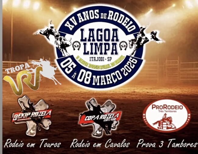E teremos ainda a presença dos campeões brasileiros da Ekip Rozeta do Enrique Moraes. Os shows artísticos serão do Caio Marques, Banda Jafferson, DJ Faísca e Banda Santa Ifigênia. No domingo ocorre o tradicional Leilão de Gado em prol da entidades. O Recinto da Lagoa Limpa se localiza na Vicinal Itajobi/Roberto KM 5.A gente se encontra por lá. (Alvani)