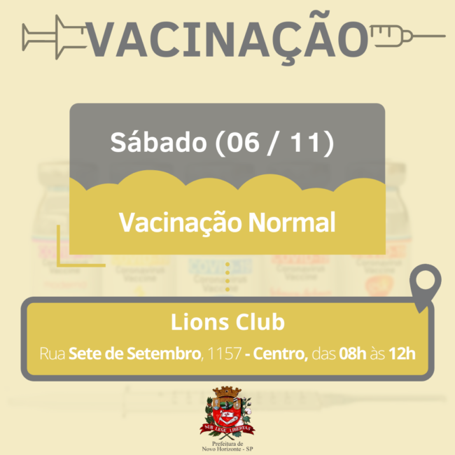 Neste sábado (06) a vacinação ocorrerá normalmente das 8h às 12h