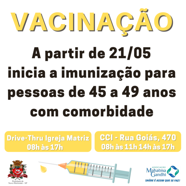 Para receber a vacina é necessário levar formulário preenchido, carimbado e assinado pelo médico.Formulário disponível em www.novohorizonte.sp.gov.br