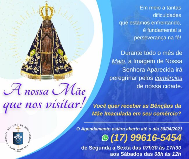 A Paróquia informa que quem quiser receber a visita e a bênção, agende na secretaria.A iniciativa ocorrerá durante todo o mês maio,mês este dedicado.
