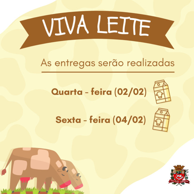 A Secretaria de Saúde e a Diretoria de Assistência e Desenvolvimento Social solicita às famílias atendidas pelo Programa Viva Leite que se atentem as datas das entregas. As entregas serão realizadas nas UBS’s.